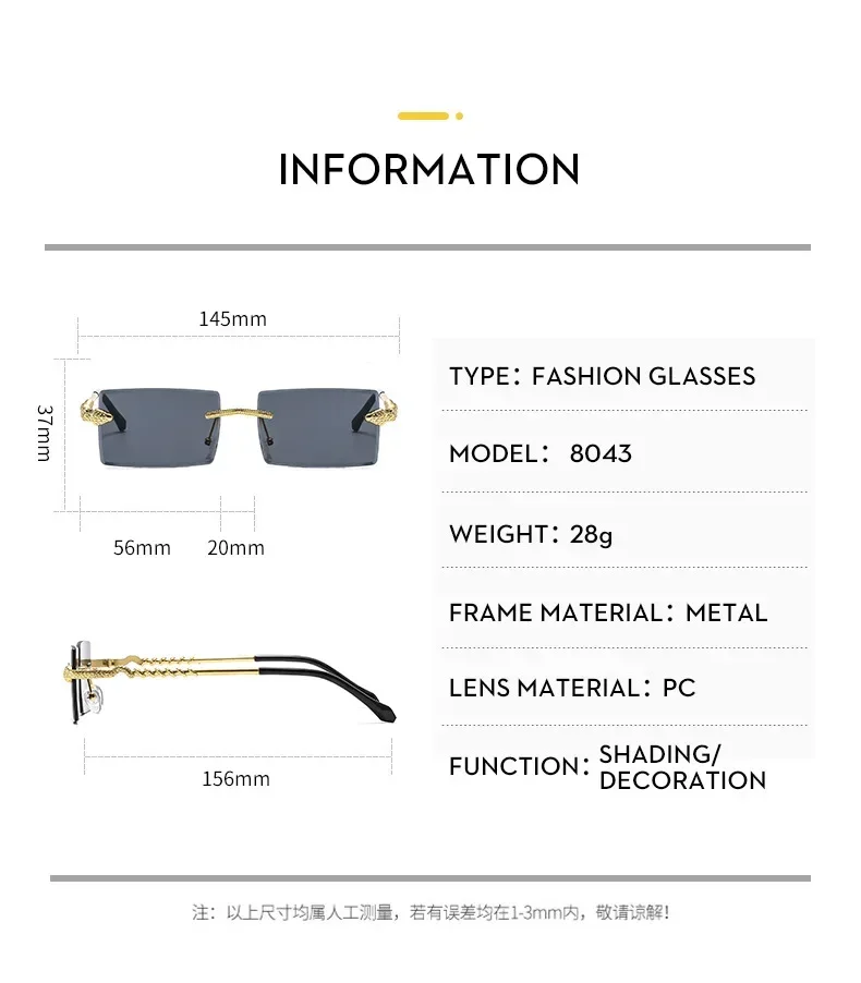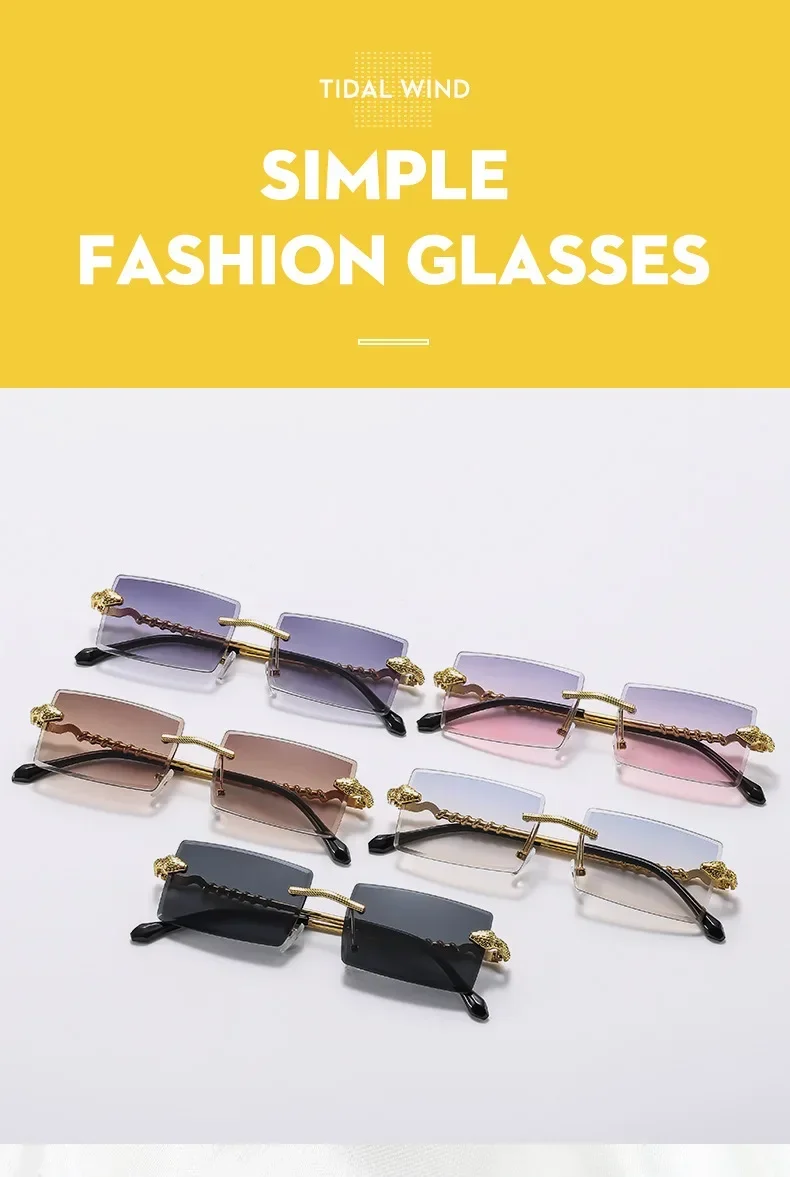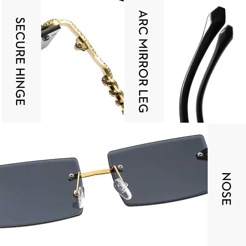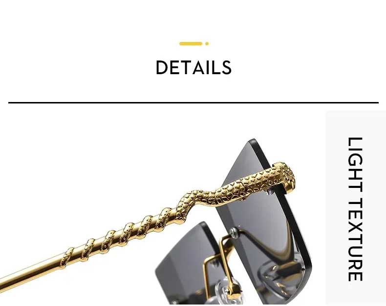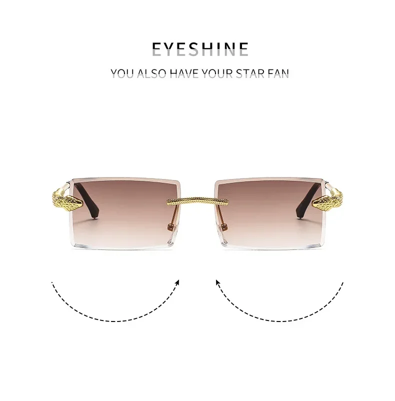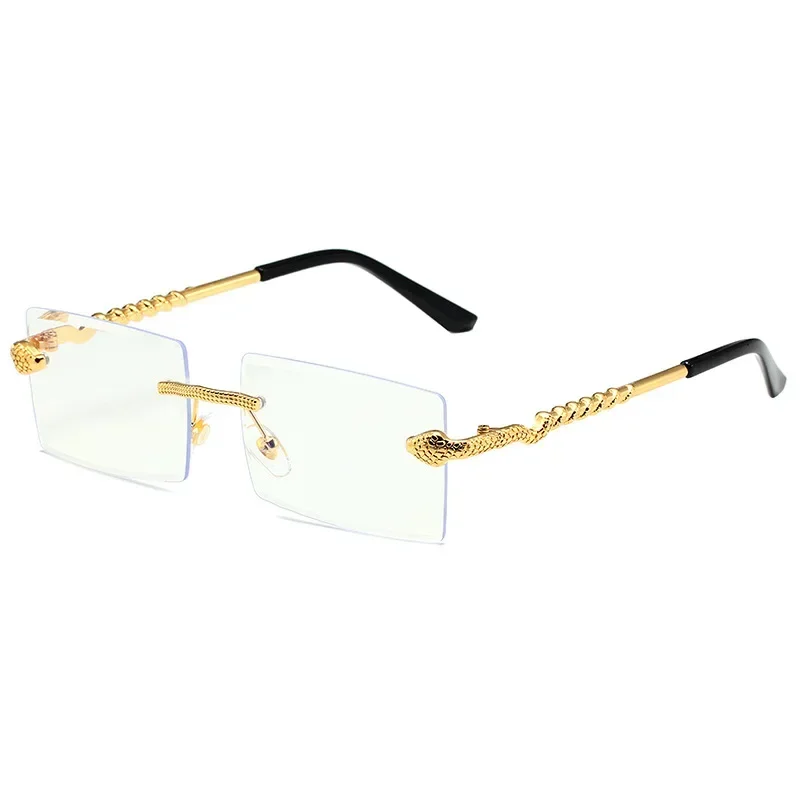 Óculos de sol feminino de luxo, armação quadrada sem aro, tendência torcida, perna de cobra, gradiente, para homens, moda de luxo, anti-uv